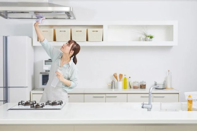 換気扇が動いたまま掃除をすると、ホコリが舞い上がったり、指が吸い込まれたりする危険があります。