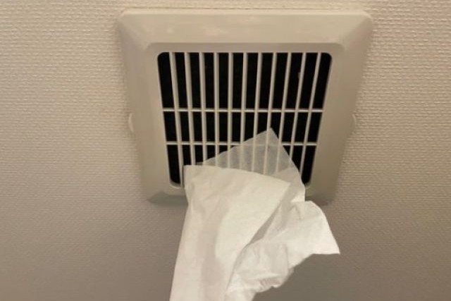 ティッシュ紙を近づけると、吸い込まれていくことでチェックできます。