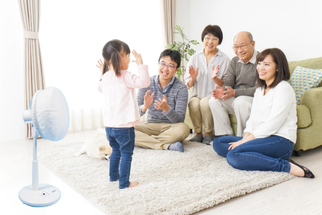 扇風機は、部屋中の空気を大きく循環させる能力を持っています。この「空気の流れを作る力」は、実は一般的な小型空気清浄機の性能を上回ることさえあるのです。」