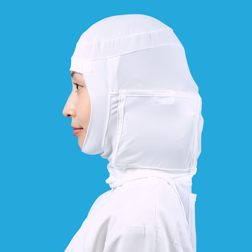 メガネスリット付き。クリーニング洗濯に耐えるインナーキャップ。帽子全体は伸縮性、通気性のある素材を使用。短髪、長髪の方もピッタリフィット。