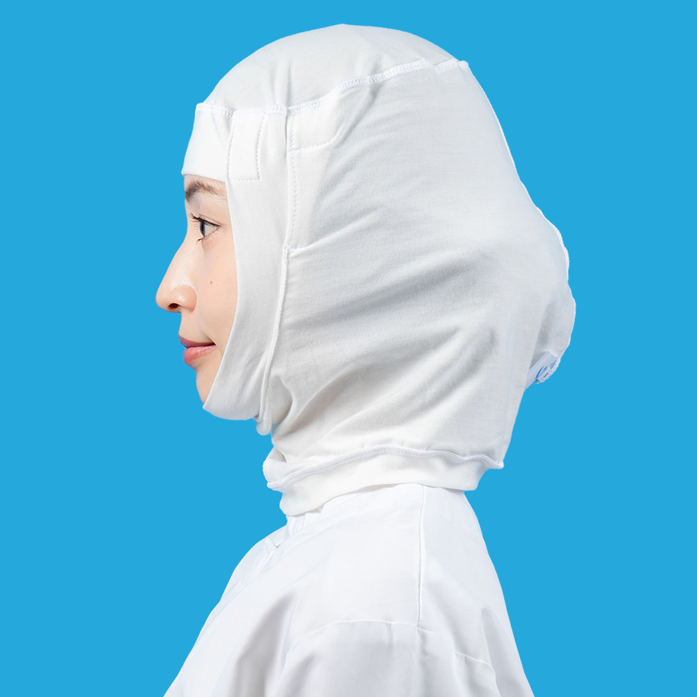フルフェイス型インナーキャップ。綿素材を使用し、肌あたりの良さを追求。化学繊維が苦手な方にお勧め。