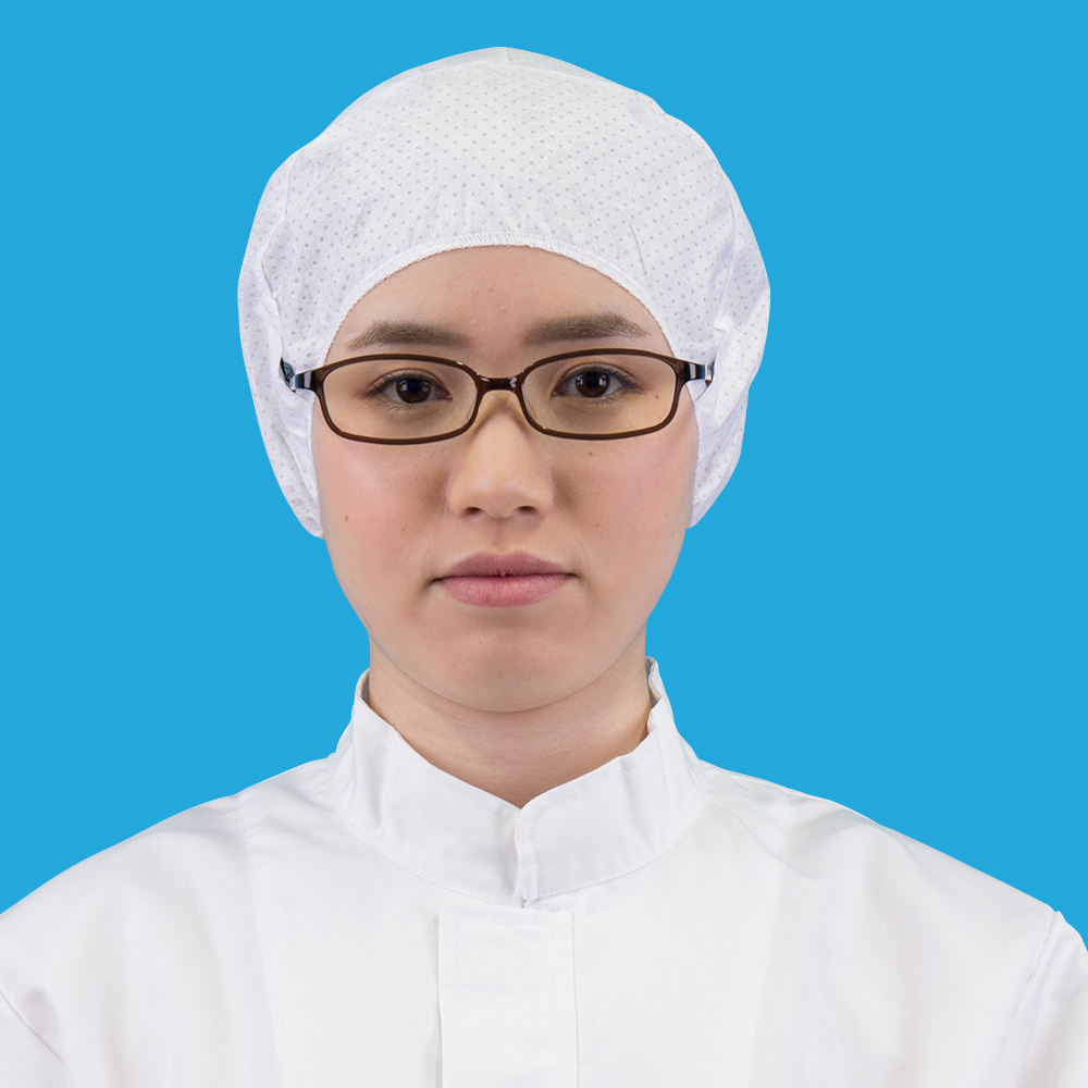 電石帽のスタンダードモデル。側頭部の電石不織布で毛髪を吸着します。